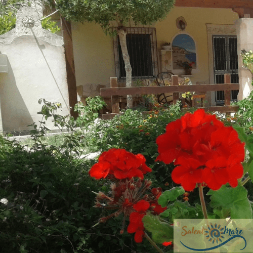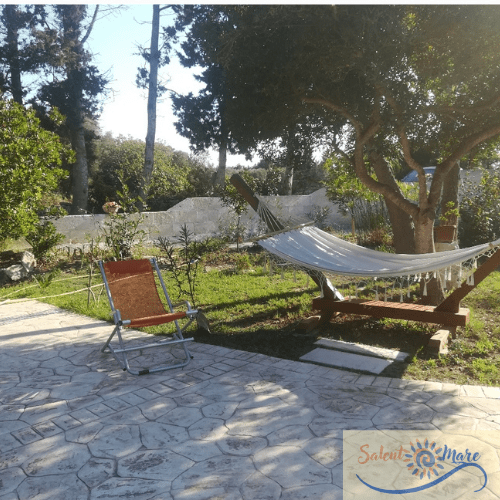 Sulla sinistra vi è un giardino ricco di piante e fiori, con un barbecue che potrete sfruttare durante il vostro soggiorno per assaporare i cibi tipici salentini in tranquillità.