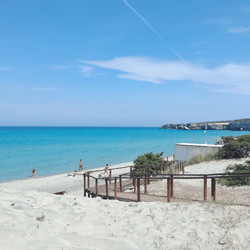 Le spiagge più vicine sono Sant’Andrea, che dista 800 metri e gli Alimini che, al pari di Torre dell’Orso, distano 2 Km.
